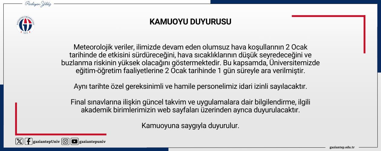 Gaziantep Üniversitesi olarak internet sitemizde çeşitli çerezler kullanmaktayız. Söz konusu çerezler sayfanın sağlıklı çalışması ve daha iyi bir ziyaretçi deneyimi sunmak için zorunlu olarak kullanılmaktadır. GAÜN Kişisel Verilerin Korunması Bilgilendirme